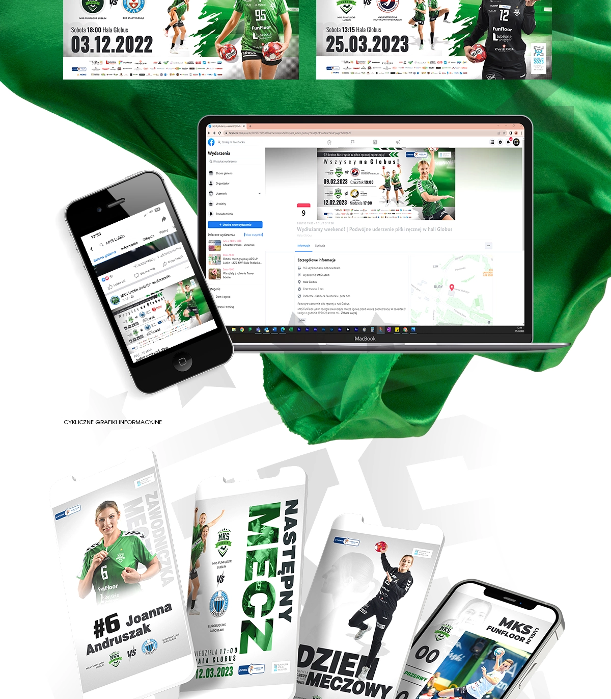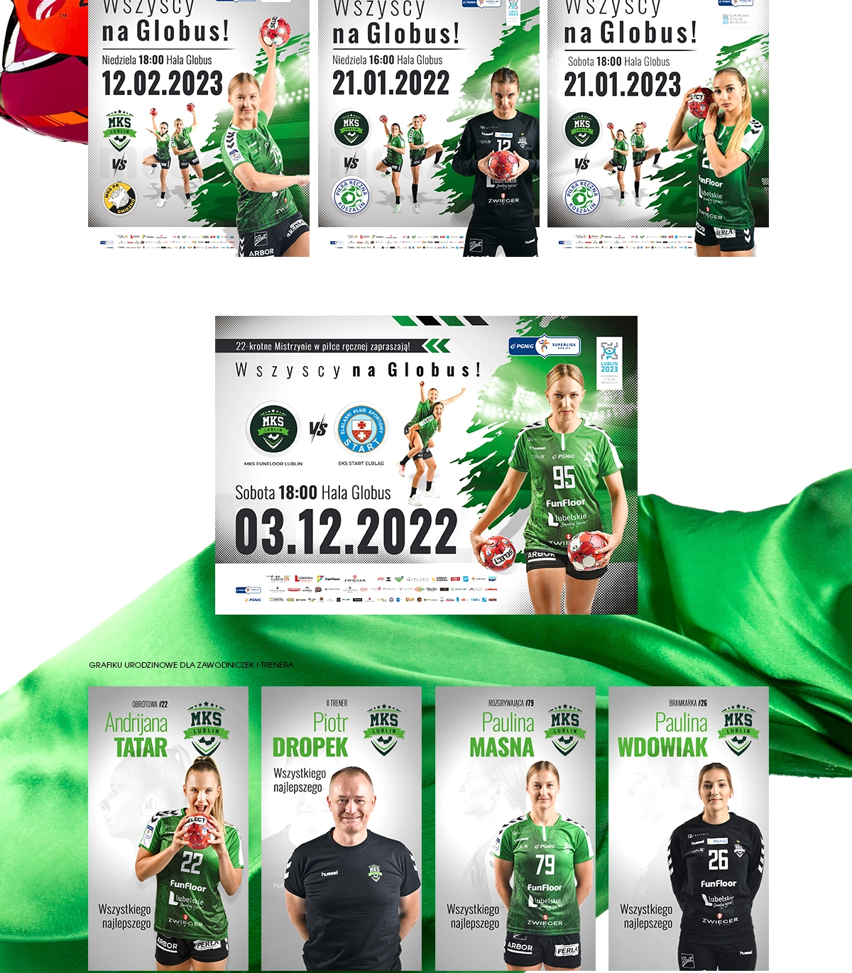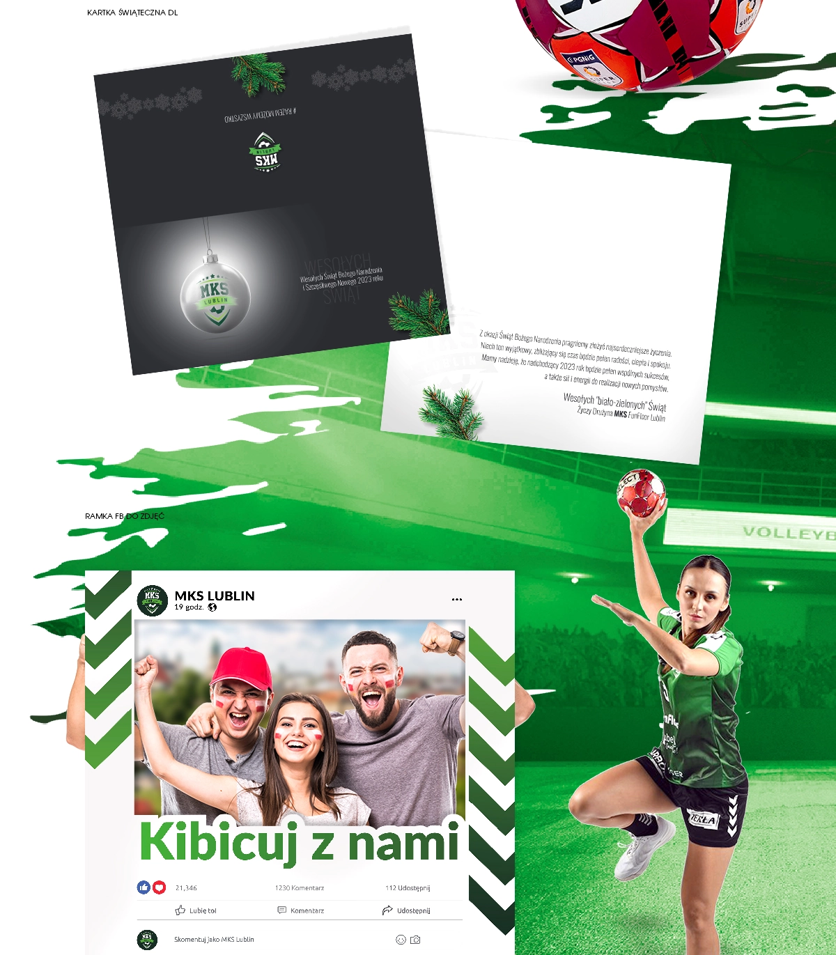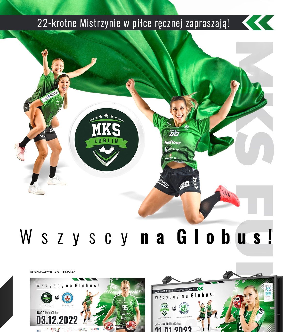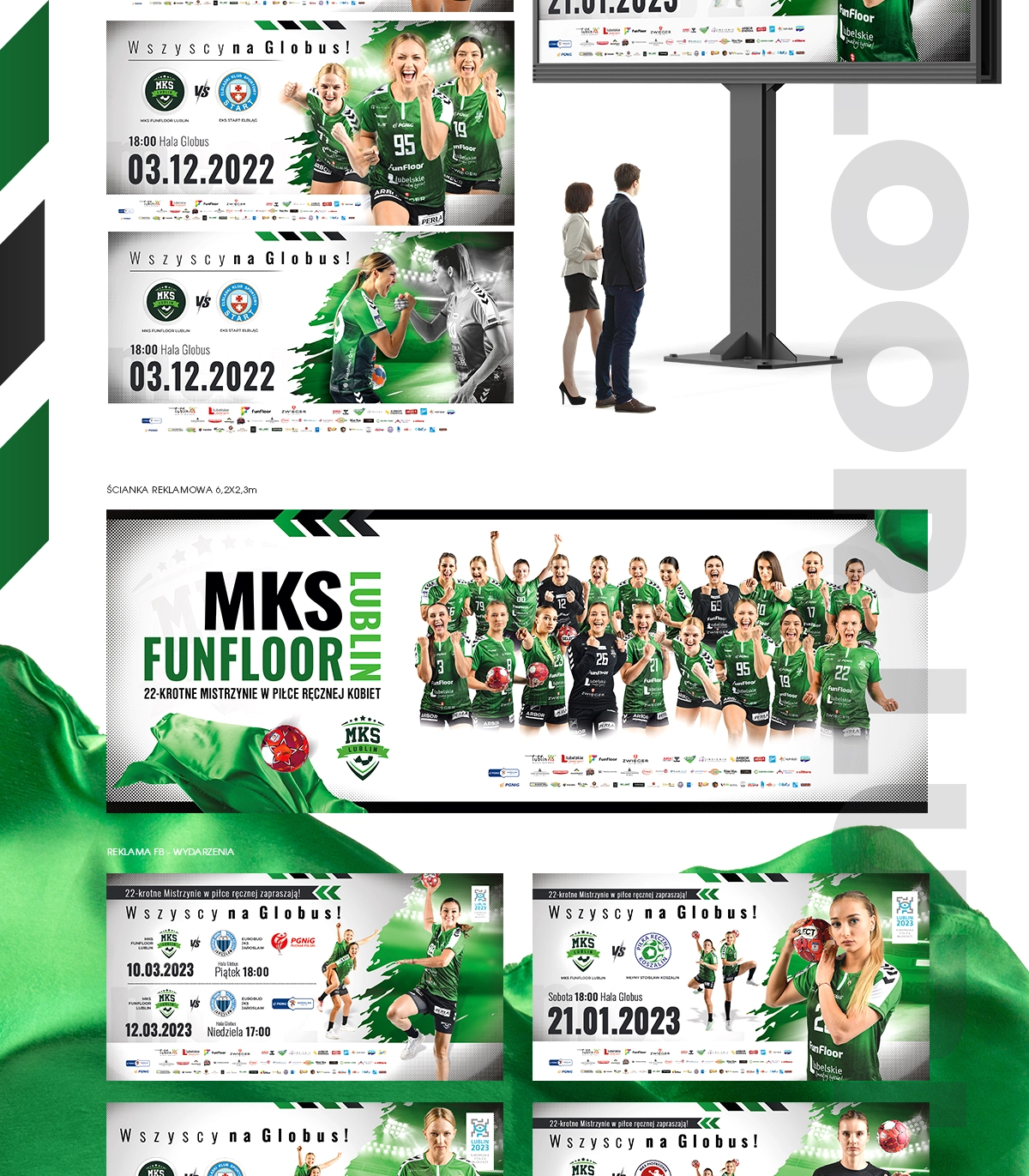 MKS FUNFLOOR LUBLIN Bilbordy Ścianka reklamowa Grafiki informacyjne Plakaty Voucher na mecz Kartka świąteczna